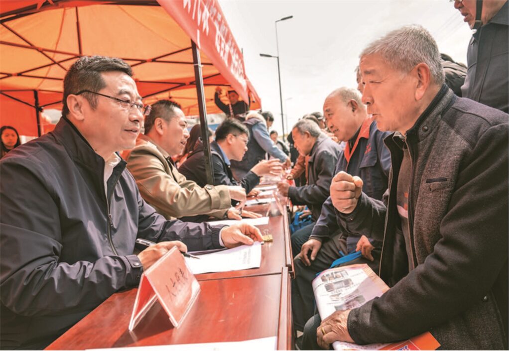 Βουλευτές των λαϊκών συνελεύσεων ακούνε τις απόψεις και τις προτάσεις των κατοίκων της περιοχής σε μια παραδοσιακή αγορά στο υποδιαμέρισμα Σουντζουάνγκ, στην πόλη Χαϊάν της επαρχίας Τζιανγκσού, στις 11 Απριλίου 2024. PEOPLE’S DAILY / Φωτογραφία: Zhai Huiyong.