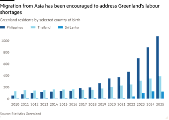 Όσοι φεύγουν αντικαθίστανται σε κάποιο βαθμό από φτωχούς Ασιάτες μετανάστες εργαζόμενους, οι οποίοι είτε αναλαμβάνουν δουλειές που οι Γροιλανδοί δεν θέλουν να κάνουν είτε έχουν ανοίξει μικρά καταστήματα και επιχειρήσεις.